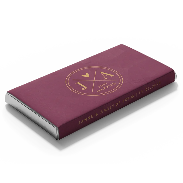 Chocoladereep met gepersonaliseerde wikkel rood initialen