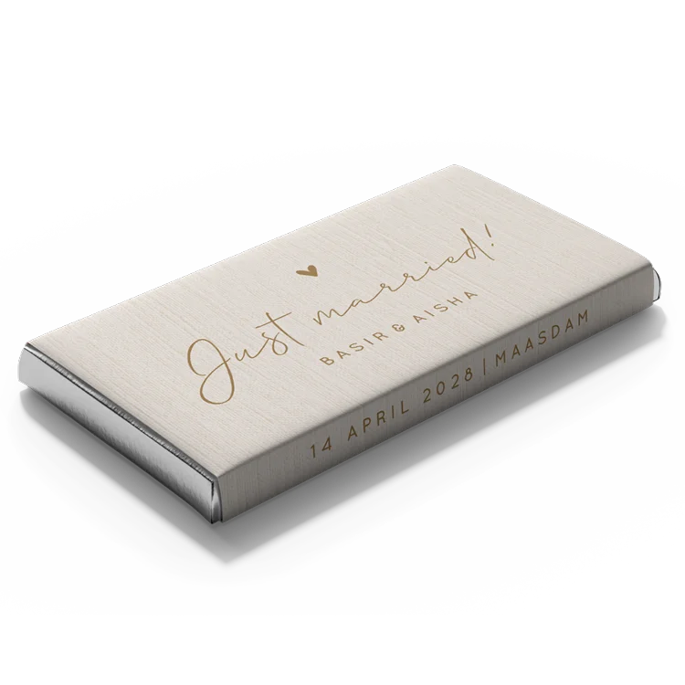 Chocoladereep met gepersonaliseerde wikkel neutrale kleuren