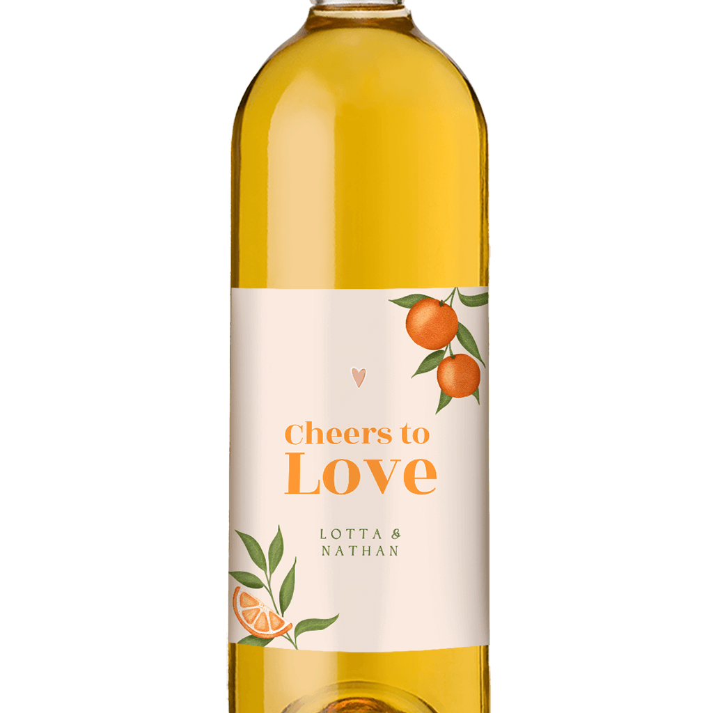 Gepersonaliseerd wijnetiket bruiloft met sinaasappels | per 5 stuks