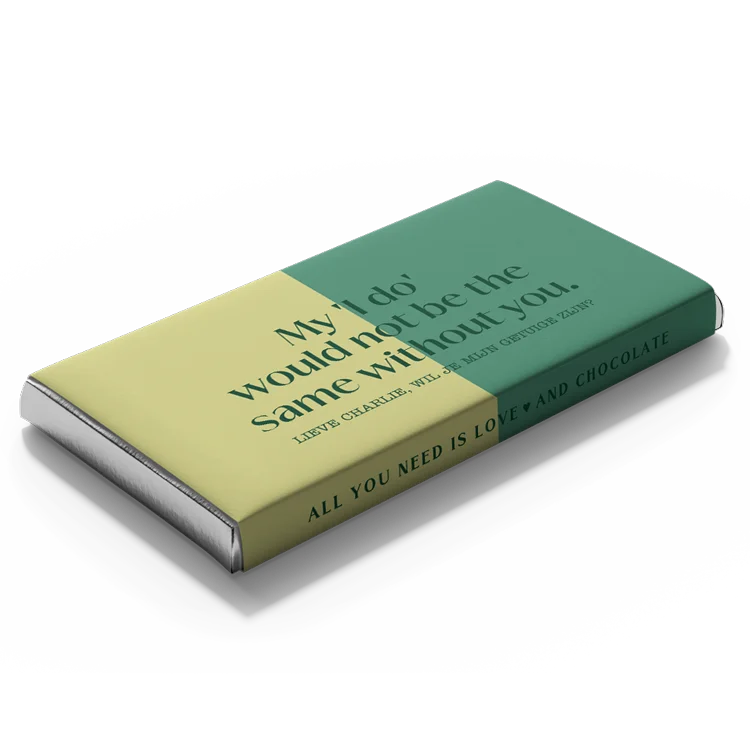 Zoek je een originele manier om je getuige te vragen? Vraag het met chocola! Deze heerlijke chocoladereep met gepersonaliseerde wikkel kun je geheel naar smaak aanpassen met de online editor.