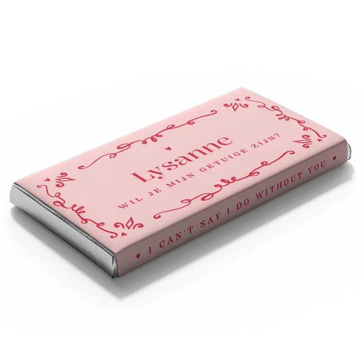 Zoek je een originele manier om je getuige te vragen? Vraag het met chocola! Deze heerlijke chocoladereep met gepersonaliseerde wikkel kun je geheel naar smaak aanpassen met de online editor.