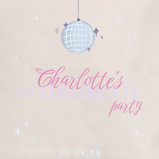 Organiseer je een bachelorette party en zoek je een cadeau voor je vriendinnen? Laat katoenen tasjes bedrukken met naam en datum! Dit toffe canvas tasje met discobal personaliseer je helemaal zelf in de online editor. We love it!