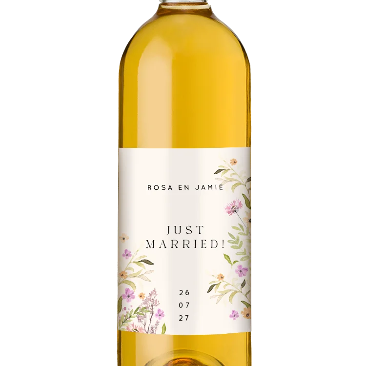 Gepersonaliseerd wijnetiket met veldbloemen - per 5 stuks