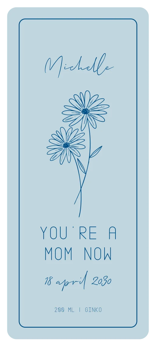 Kraamcadeau doucheschuim in blauw met geboortebloem