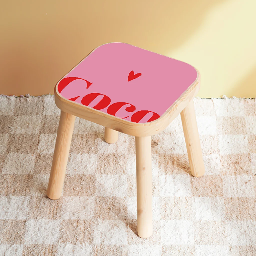 Deze roze meubelsticker met rood hartje plak je op een FLISAT kinderkrukje van IKEA. Hoe leuk voor in de kinderkamer?