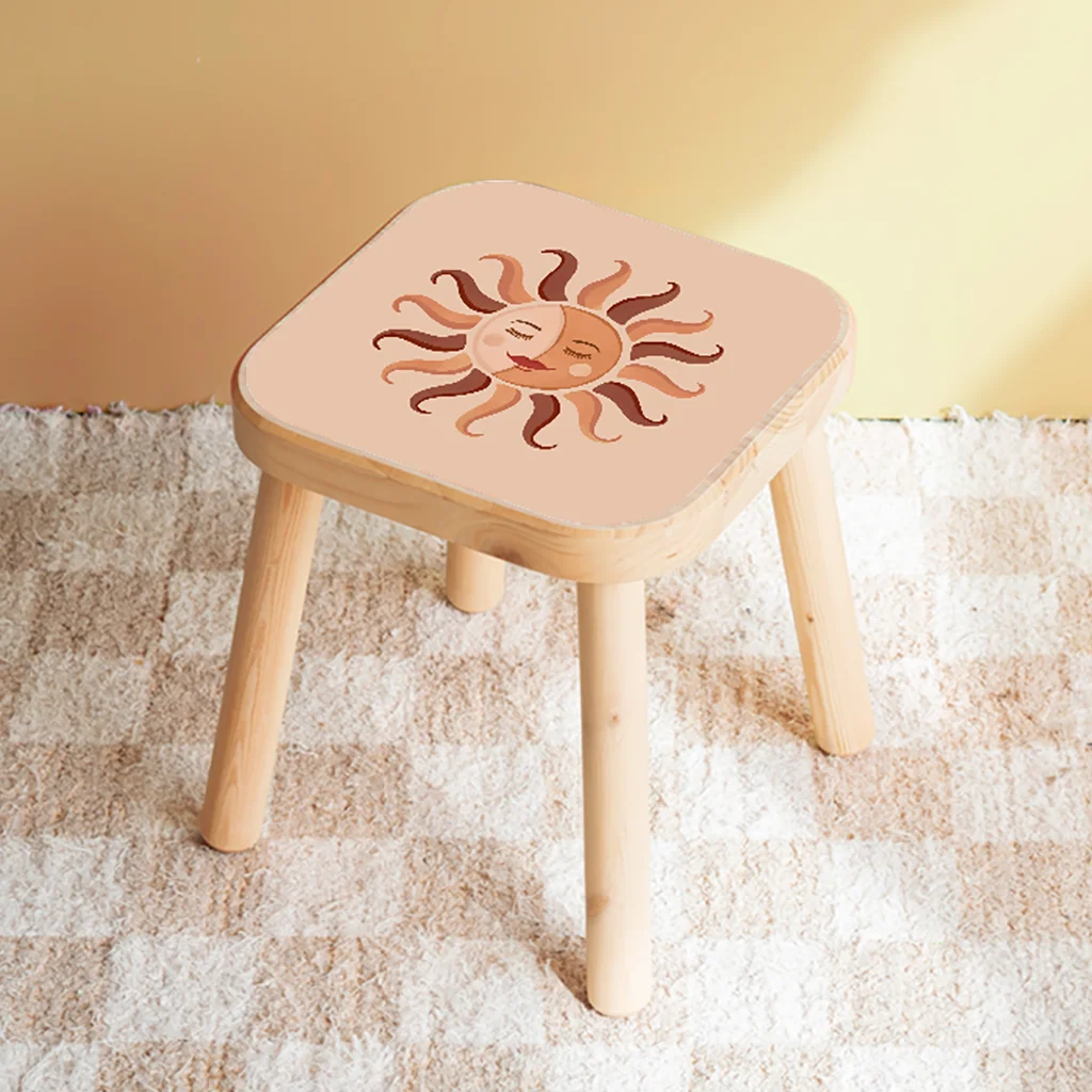 Deze terracotta meubelsticker met Mexican sun plak je op een FLISAT kinderkrukje van IKEA. Hoe leuk voor in de kinderkamer?