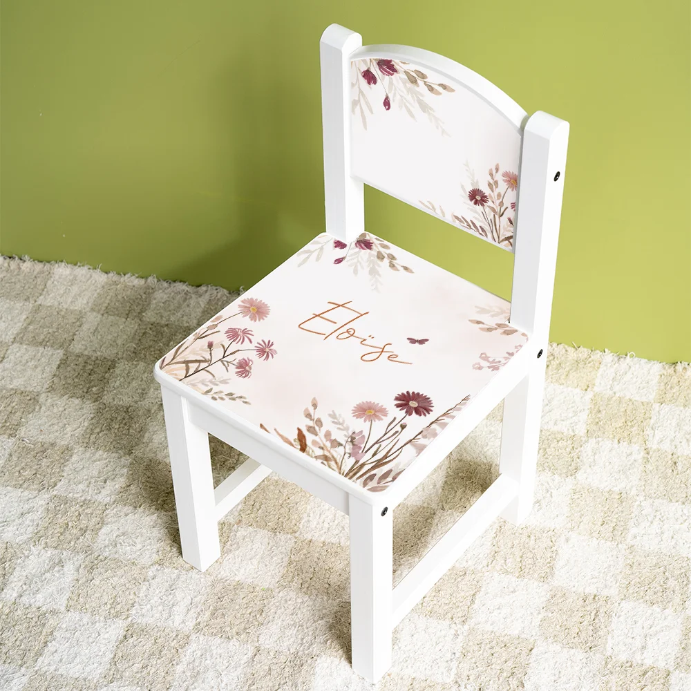 Deze neutrale meubelsticker met roze droogbloemen plak je op een SUNDVIK kinderstoeltje van IKEA. Hoe leuk voor in de kinderkamer?