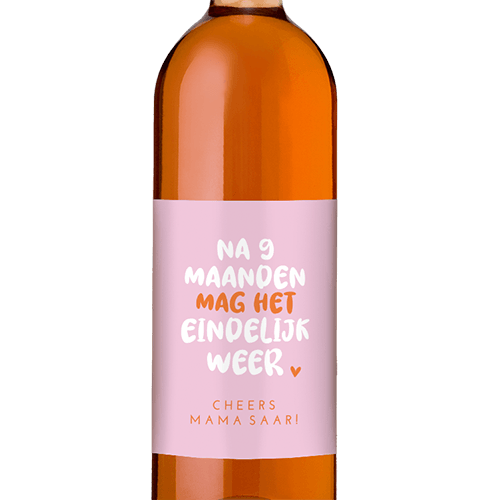 Op zoek naar een originele cadeau voor een kersverse moeder? Kies voor dit leuke wijnetiket. Pas het etiket gemakkelijk zelf aan in onze editor.