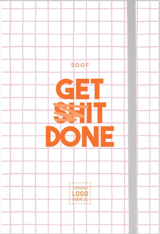 Notitieboek met tekst in oranje als motiverend collega­cadeau