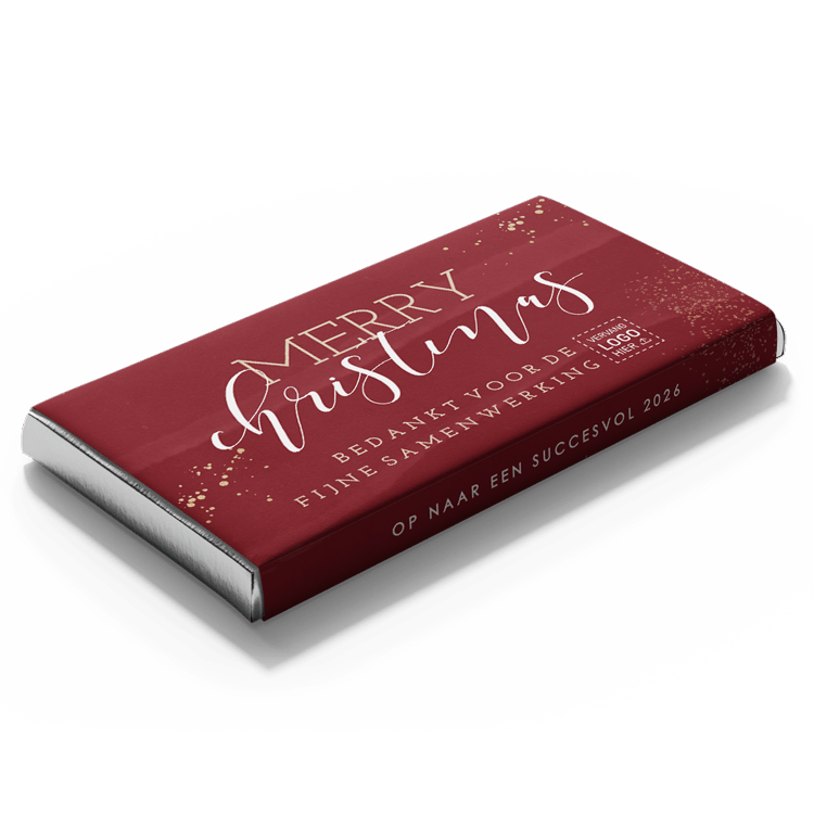 Wat een origineel relatiegeschenk voor de feestdagen is deze chocoladereep met eigen wikkel! Personaliseer de wikkel met je eigen logo.