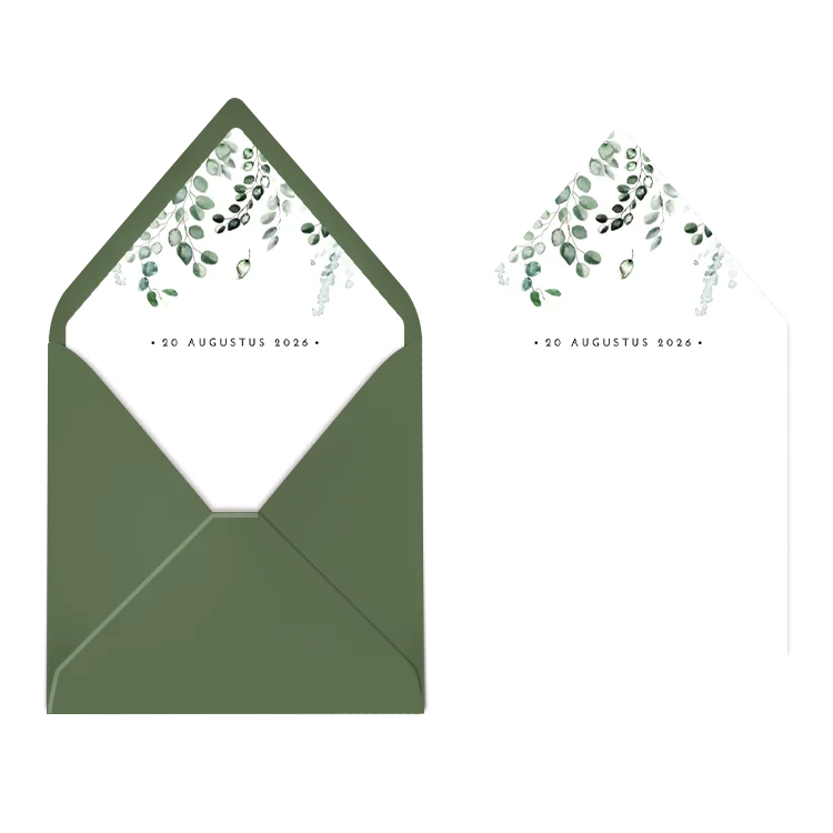 Inlay envelop met eucalyptus en trouwdatum | voor envelop 14 x 14 cm