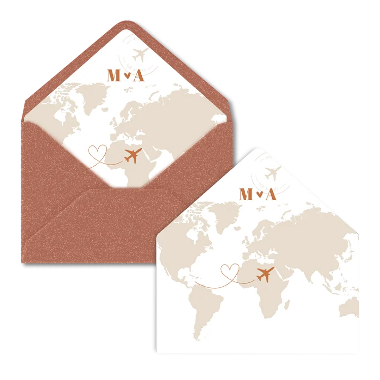 Envelop inlay met wereldkaart | voor envelop 12 x 18 cm