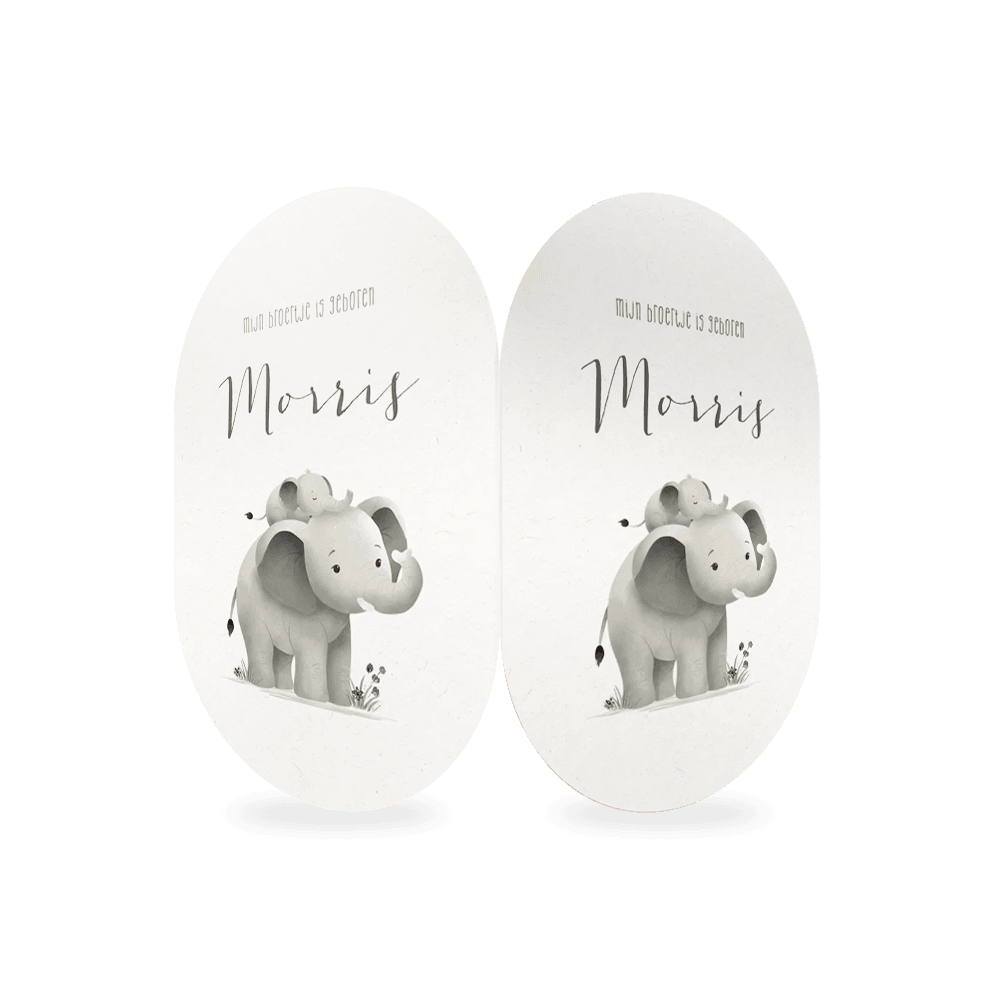Maak de geboorte van jullie kleintje bekend met dit ovale geboortebord met lieve olifantjes! Je bewerkt het bord gemakkelijk in onze editor.