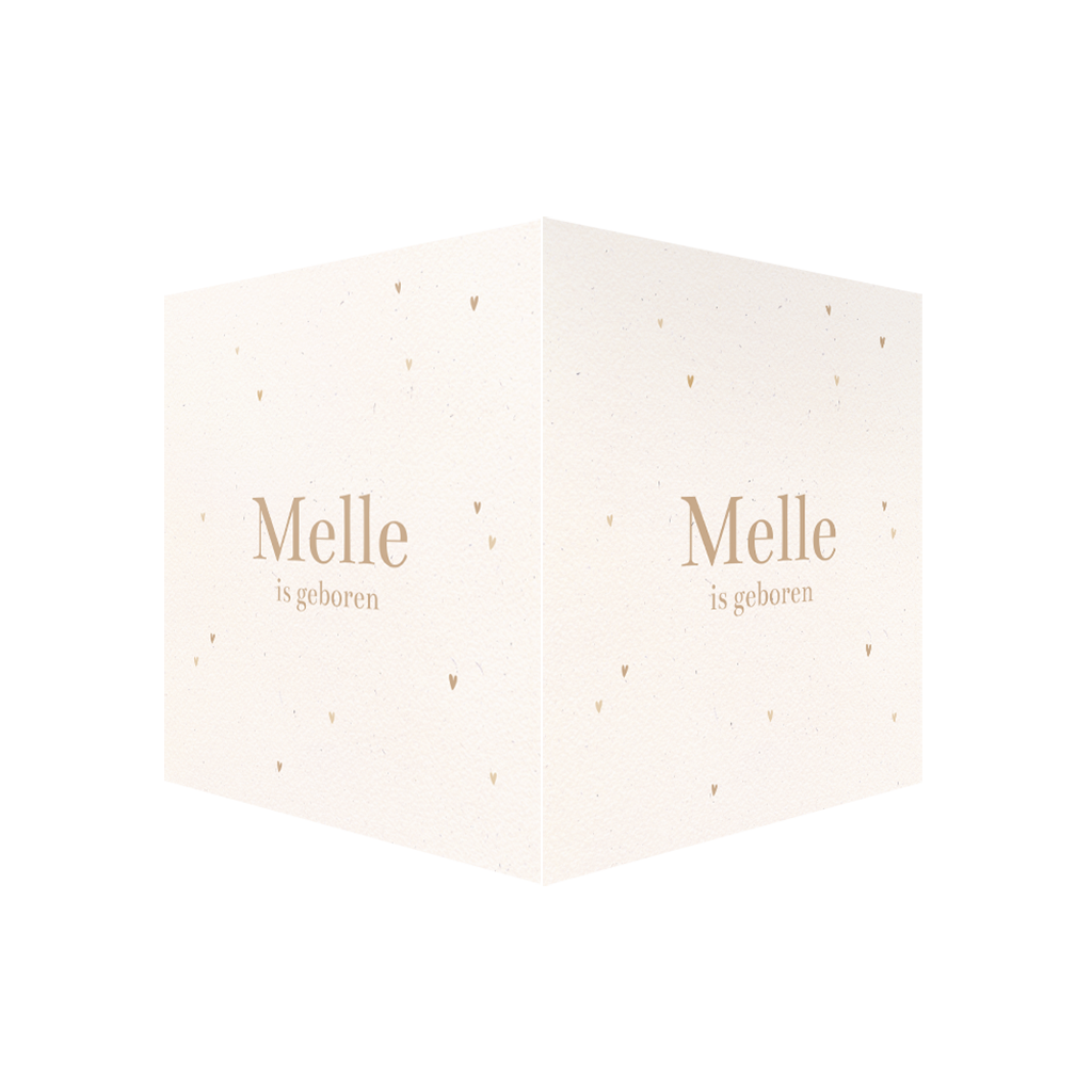 Een lief geboortekaartje met hartjes in beige, pas het ontwerp aan in onze editor.