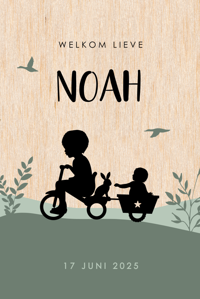 Wat een gaaf kaartje is dit! Speciaal voor jullie kleine bink en broertje, ontwierpen wij dit geboortekaartje. Echt bijzonder omdat het gedrukt wordt op écht berkenhout.