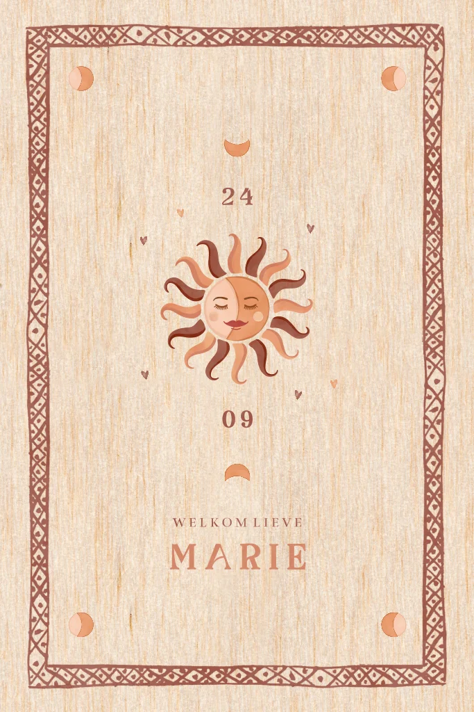 Goed om te weten: dit design bevat een kader. Omdat de kaarten na het drukken op een groot vel pas worden uitgesneden op het juiste formaat, kan het zijn dat het kader íetsje smaller of breder uitvalt. Dit gaat slechts om een paar millimeter, maar we willen het wel graag vermelden.