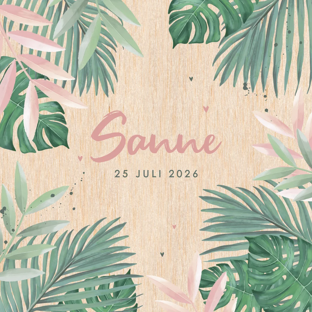 Wat een gaaf kaartje is dit! Speciaal voor jullie kleintje, ontwierpen wij dit geboortekaartje. De combinatie van de botanische bladeren op écht berkenhout, maakt dit kaartje uniek.
