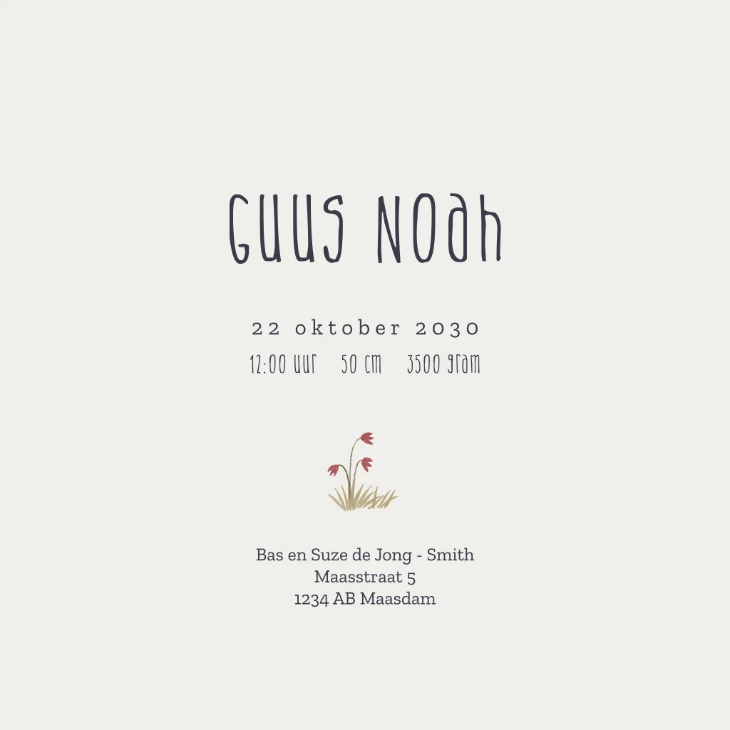 Avontuurlijk geboortekaartje met muisje in bos en goudfolie