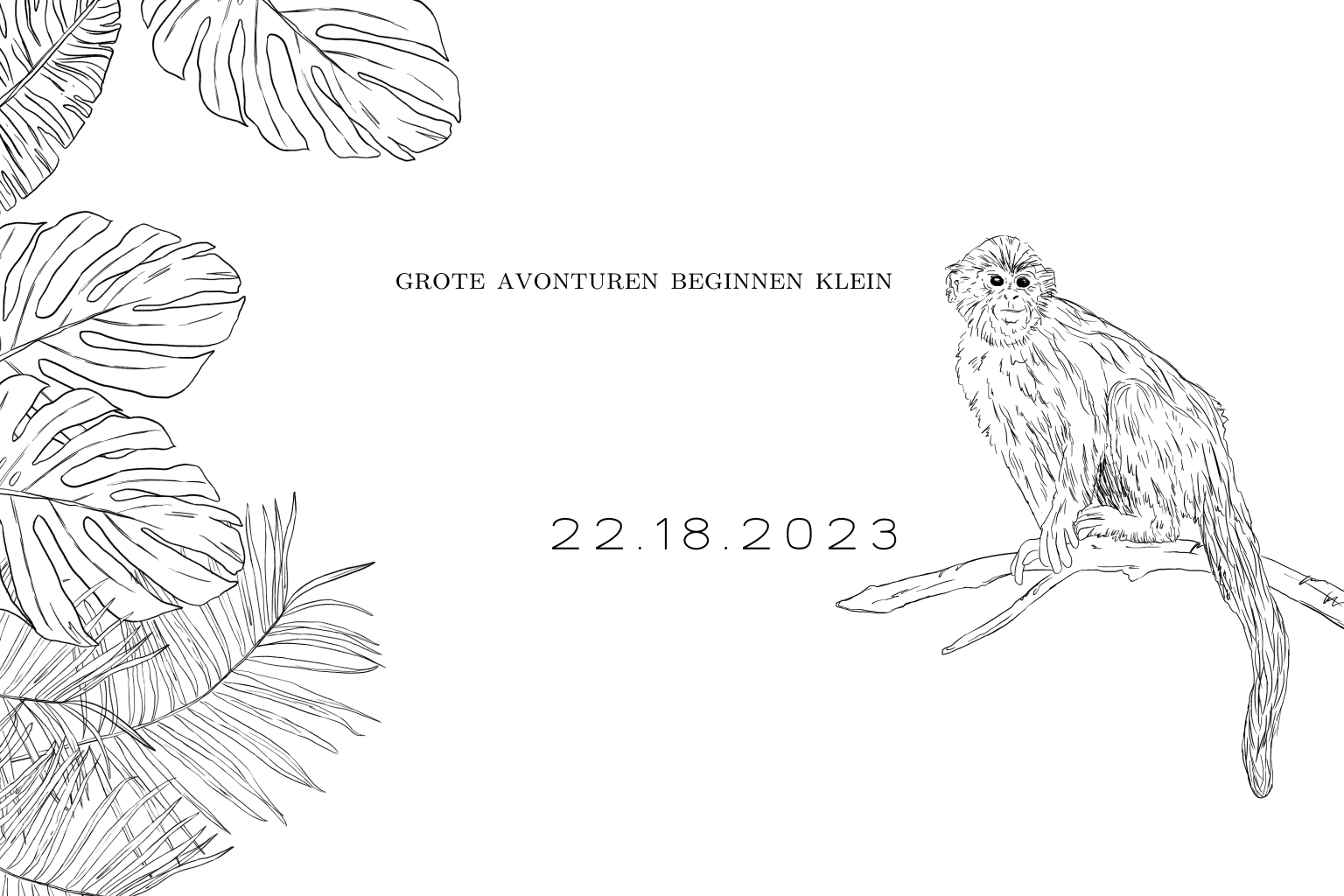 Avontuurlijk geboortekaartje zoon jungle zwart-wit