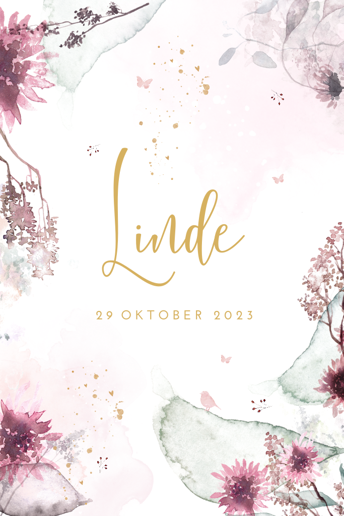 Floral geboortekaartje dochter met bloemen in thema herfst