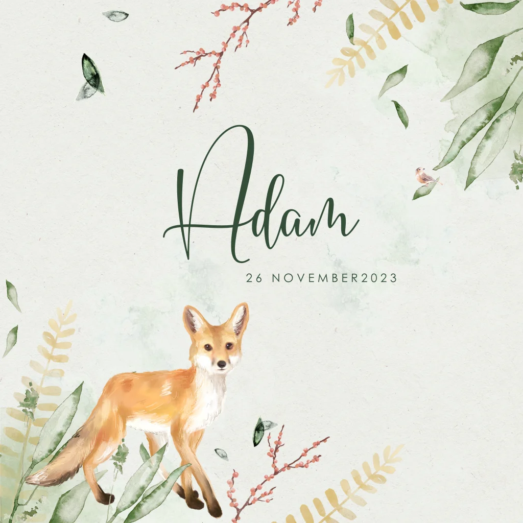 Floral geboortekaartje vosje zoon takjes en vogeltje