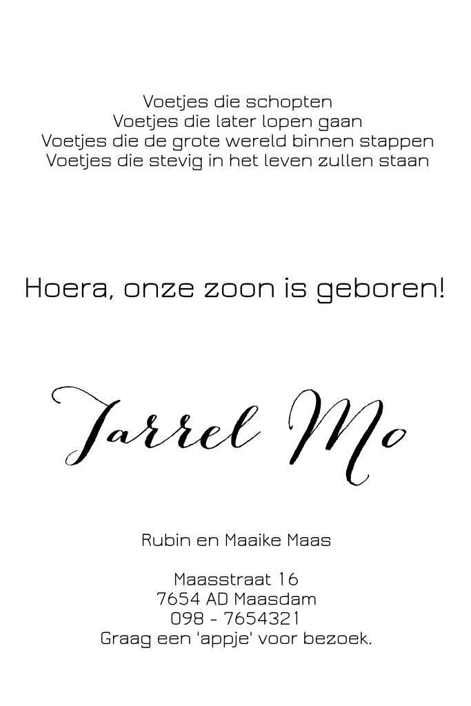 Iedereen is natuurlijk erg nieuwsgierig naar jullie zoon. Met een foto van jullie kleine ukkepuk op het geboortekaartje verras je iedereen. En een mooi aandenken voor later.