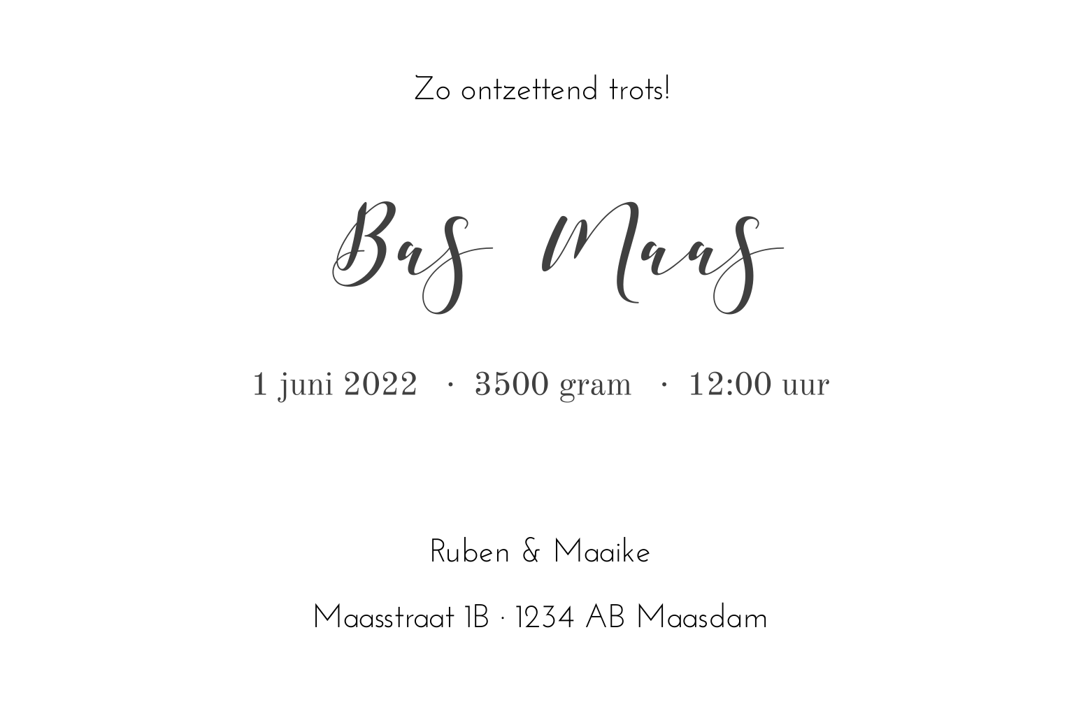 Ben je van plan om een newborn shoot te gaan doen met je zoontje? Kies dan voor een kaart met grote foto op de voorzijde!