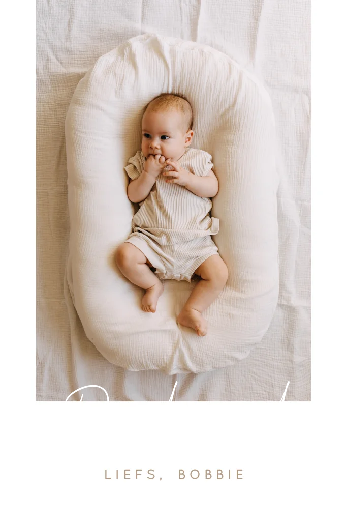 Een mooie en persoonlijke kaart voor familie of vrienden die in de kraamtijd jullie hebben bezocht of een kaartje hebben gestuurd. Pak het kaartje op, vervang gemakkelijk de foto’s en bewerk in de editor.