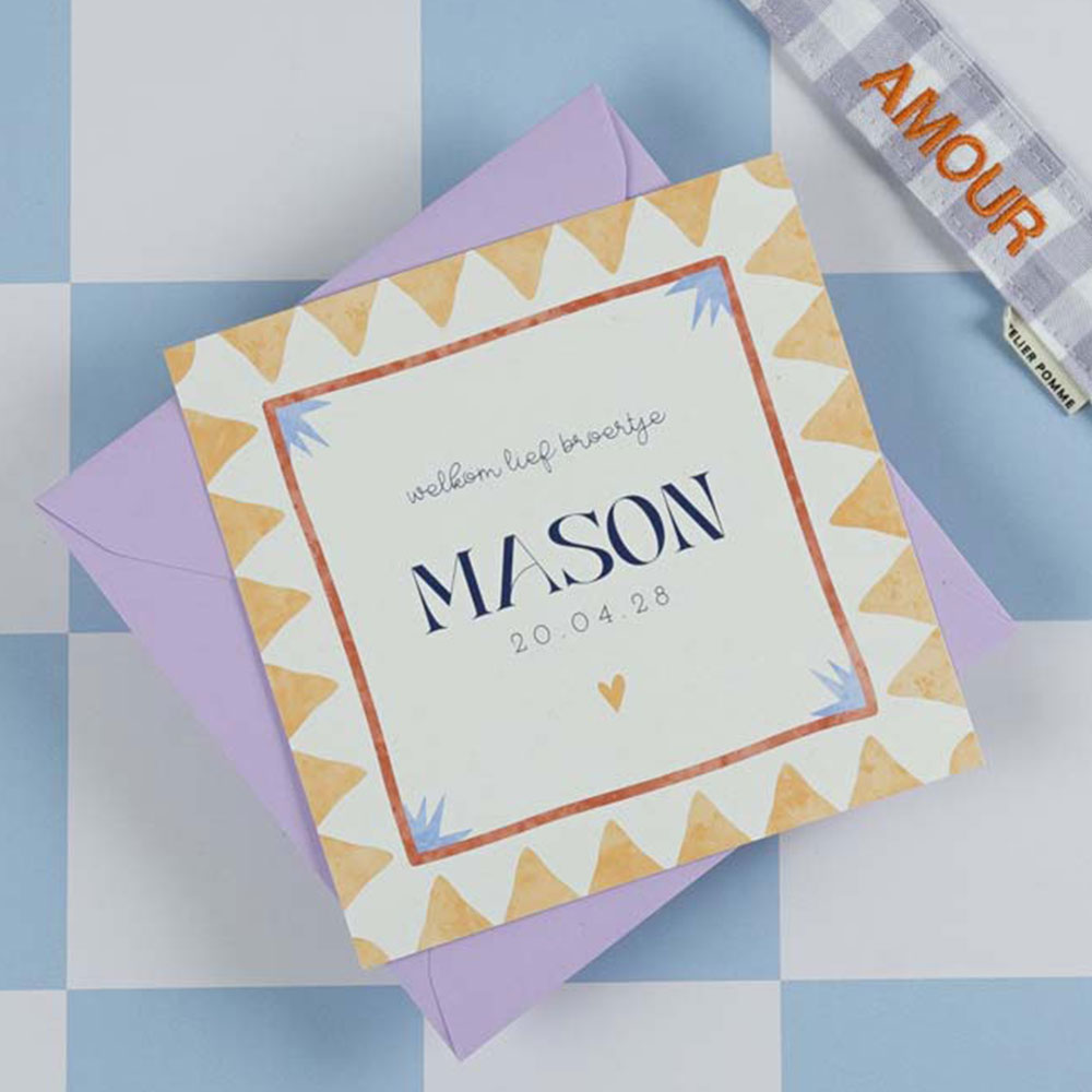 Geboortekaartje origineel met aardetinten en kader