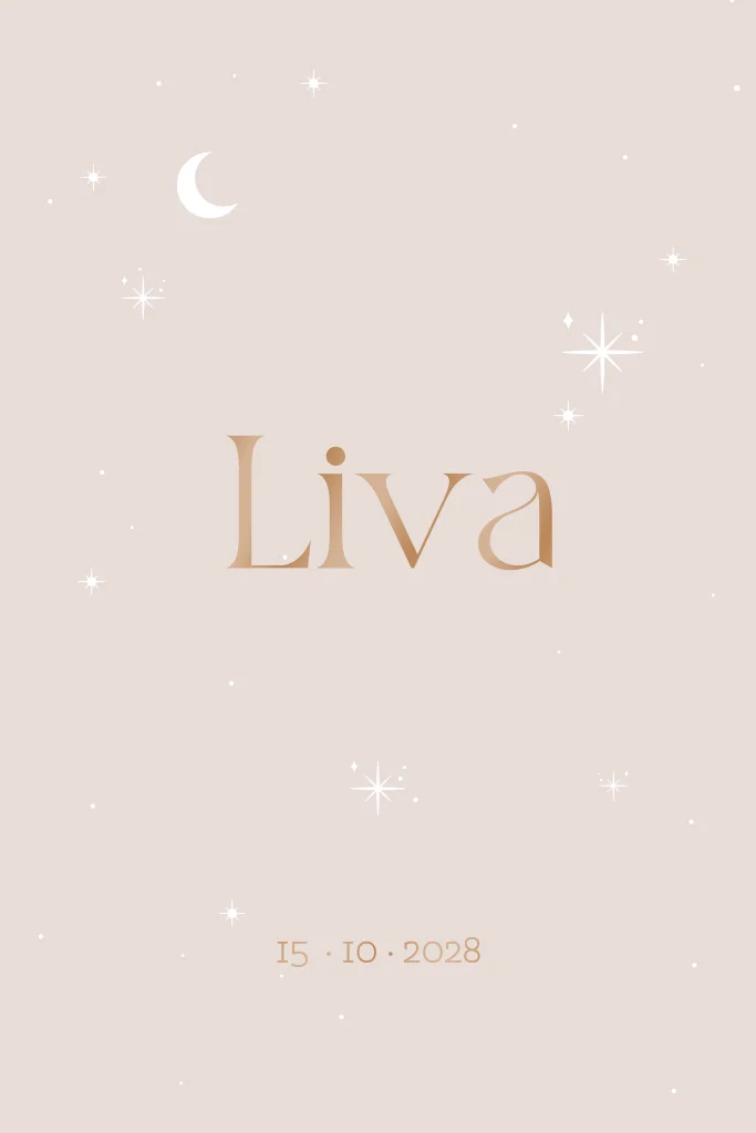 Zo dreamy, deze celestial geboortekaart in zacht roze met hoogglans! Kies heel eenvoudig afbeeldingen uit onze beeldbank. Voeg eigen tekst toe en maak een uniek geboortekaartje.