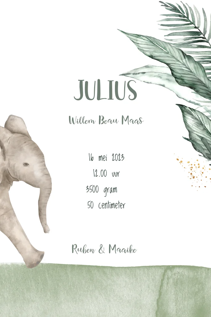 Bekijk alle geboortekaartjes met olifant hier.