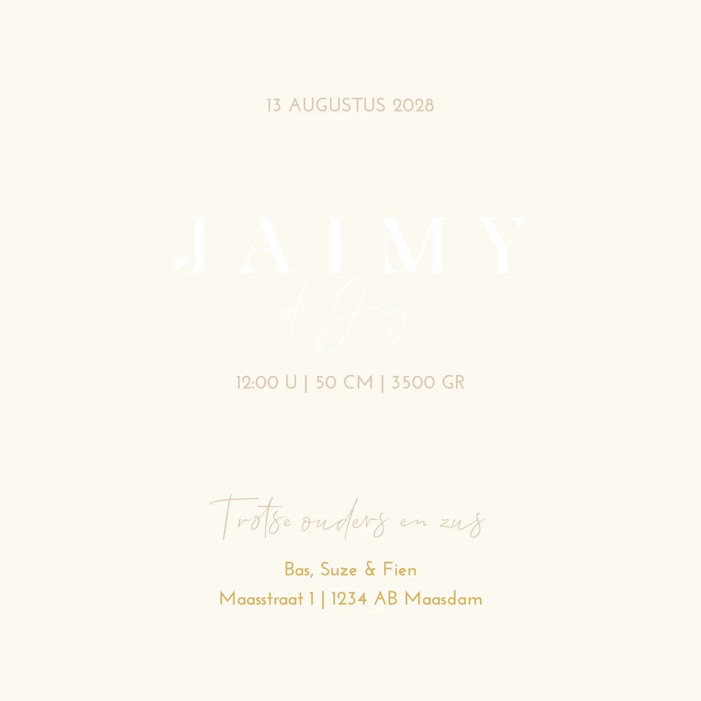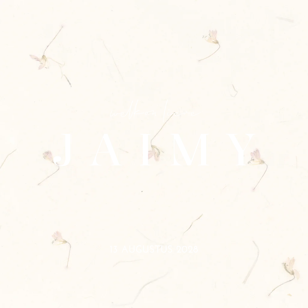 Zo zoet, dit geboortekaartje met droogbloemetjes! De neutrale kleuren in combinatie met de naam van je kleintje in goudfolie maken dit kaartje extra stijlvol.