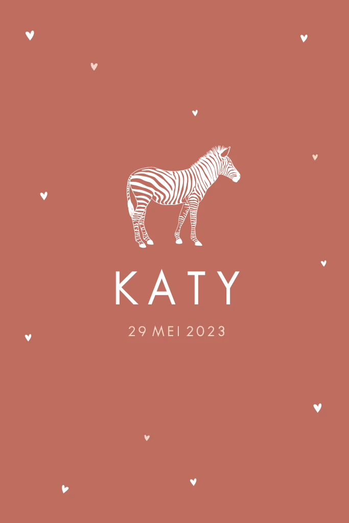Bij de geboorte van jullie meisje hoort een bijzonder geboortekaartje. Wat dacht je van dit stijlvolle kaartje met zebra en goudfolie? De unieke illustratie maakt het kaartje heel speciaal. Liever rosé, zilver of koperfolie? Dat pas je heel makkelijk zelf aan in de editor!