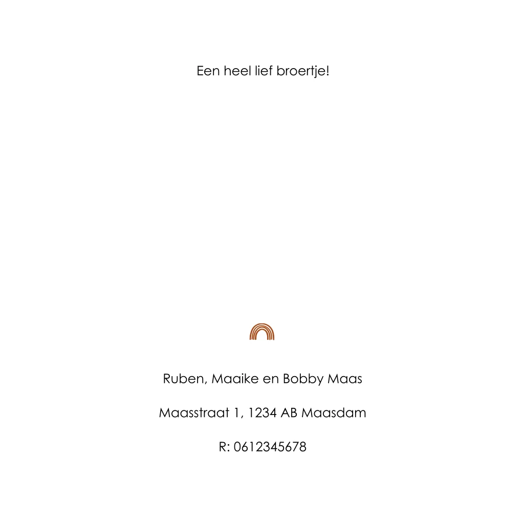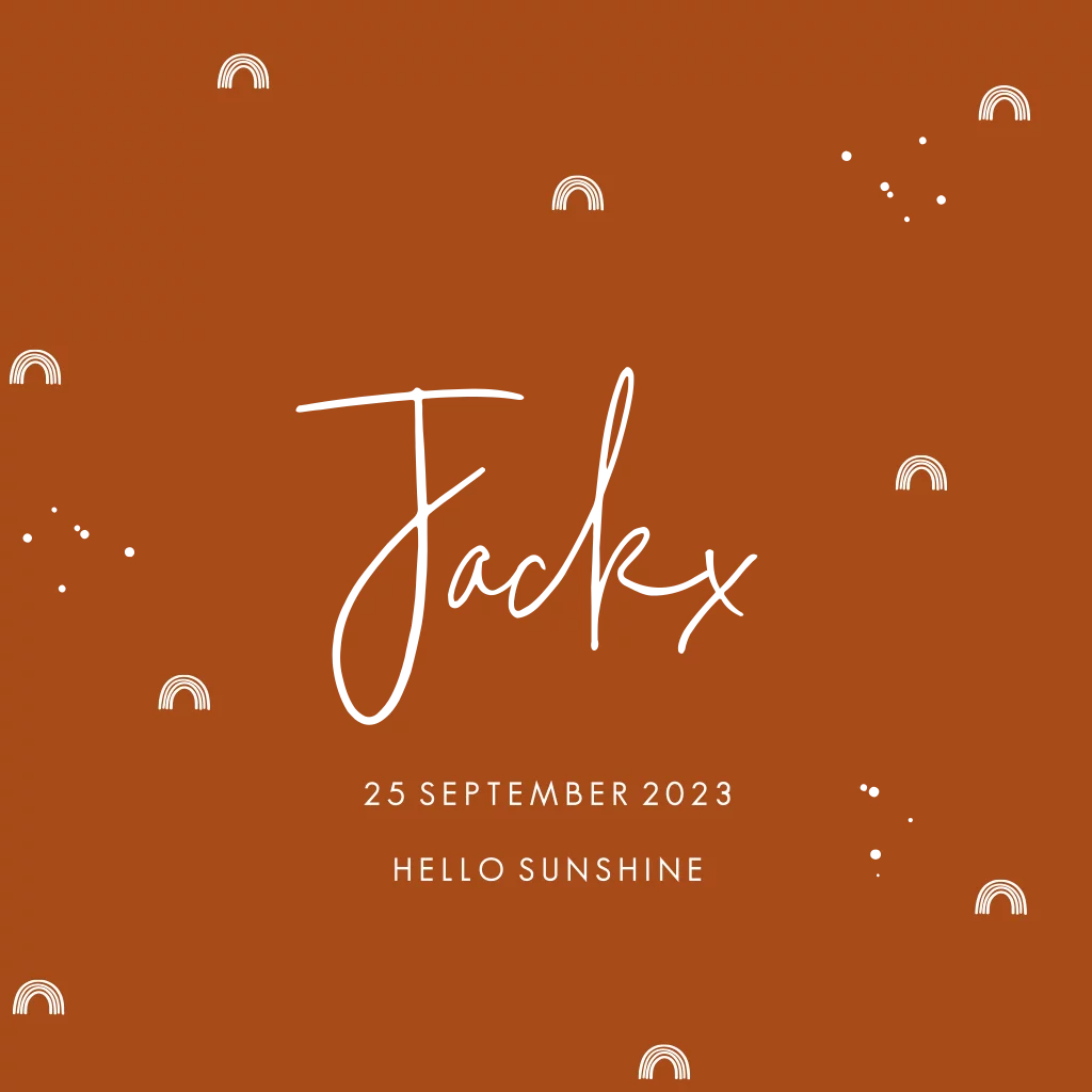 Bij de geboorte van jullie stoere mannetje hoort een bijzonder geboortekaartje. Wat dacht je van dit stijlvolle kaartje met regenboogjes patroon? De elementen in goudfolie maken het kaartje heel speciaal. Liever koper, zilver of roséfolie? Dat pas je heel makkelijk zelf aan in de editor!