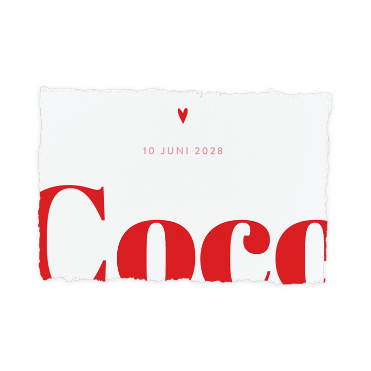 Wat bijzonder, een geboortekaartje met een handgeschept papier-look! De randen van het papier geven de kaart een authentiek en uniek uiterlijk. Je kunt het papier door middel van een speciale liniaal zelf scheuren om de handgeschepte look te bereiken. We raden je aan om onderstaande tips goed door te lezen voor het beste resultaat.