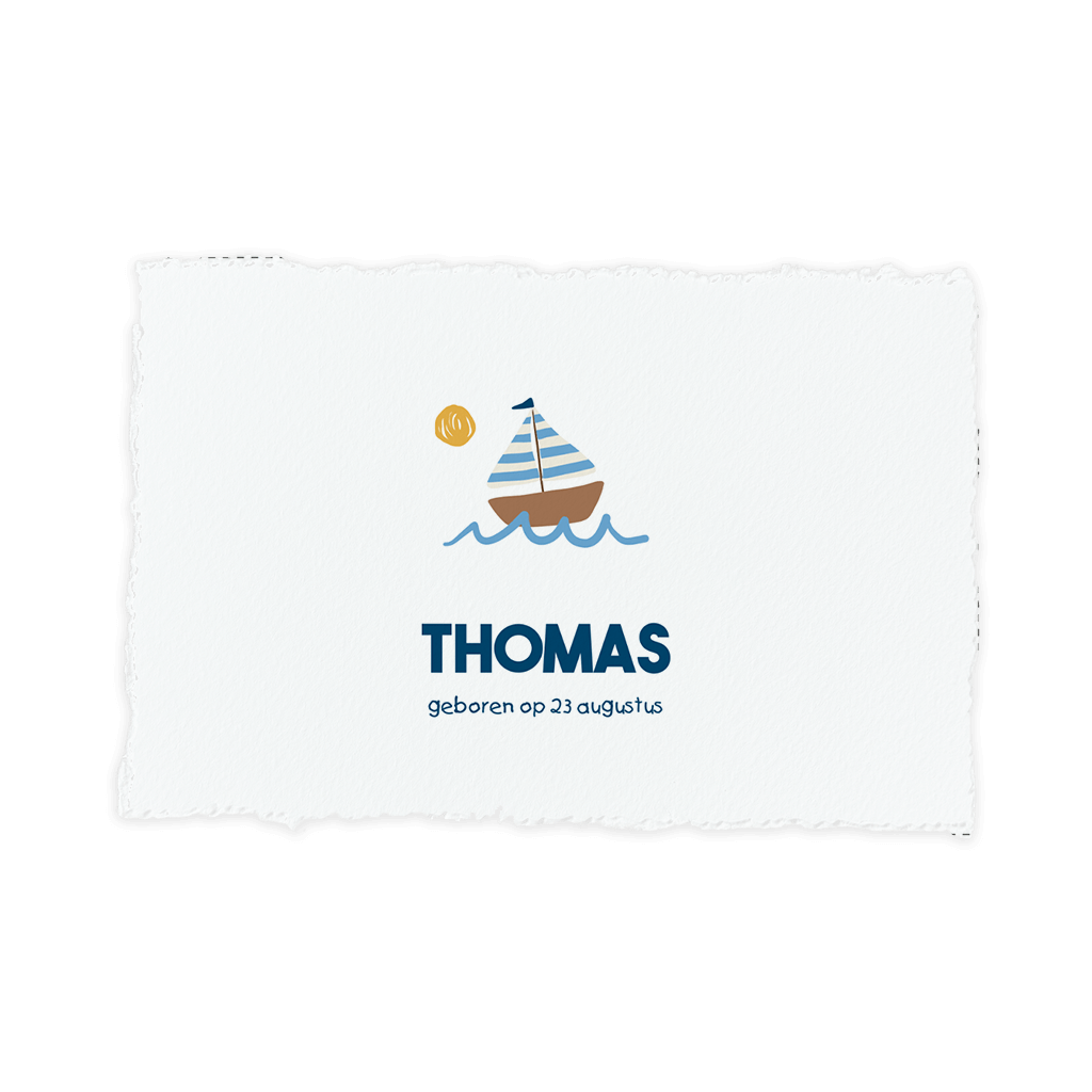Wat bijzonder, een geboortekaartje met een handgeschept papier-look! De randen van het papier geven de kaart een authentiek en uniek uiterlijk. Je kunt het papier door middel van een speciale liniaal zelf scheuren om de handgeschepte look te bereiken. We raden je aan om onderstaande tips goed door te lezen voor het beste resultaat.