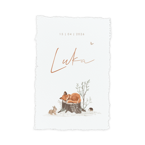 Wat bijzonder, een geboortekaartje met een handgeschept papier-look! De randen van het papier geven de kaart een authentiek en uniek uiterlijk. Je kunt het papier door middel van een speciale liniaal zelf scheuren om de handgeschepte look te bereiken. We raden je aan om onderstaande tips goed door te lezen voor het beste resultaat.