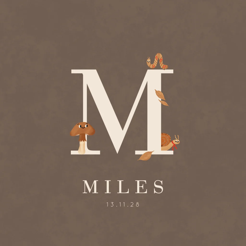 Geboortekaartje herfst voor jongen in bruin met insecten
