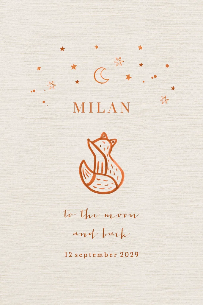 Kondig de geboorte van jullie zoontje aan met dit schattige geboortekaartje met vosje! Pas kleuren, lettertypes en andere elementen naar wens aan in de online editor.