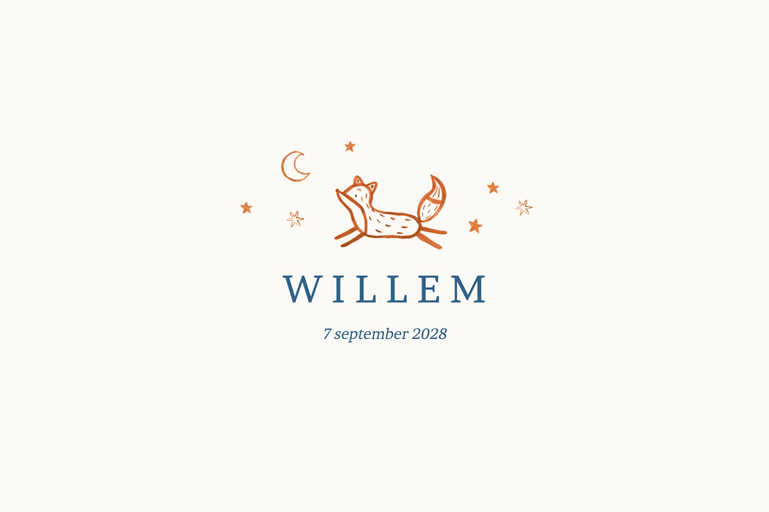 Kondig de geboorte van jullie zoontje aan met dit schattige geboortekaartje met vosje in herfstkleuren! Pas kleuren, lettertypes en andere elementen naar wens aan in de online editor.