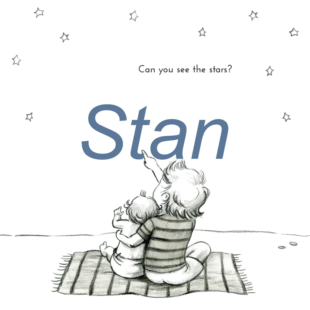 Prachtige geboortekaartje broertje met de illustratie van twee broertjes die samen naar de sterren kijken. Mooi op oud-hollands papier met een lichtblauwe envelop.