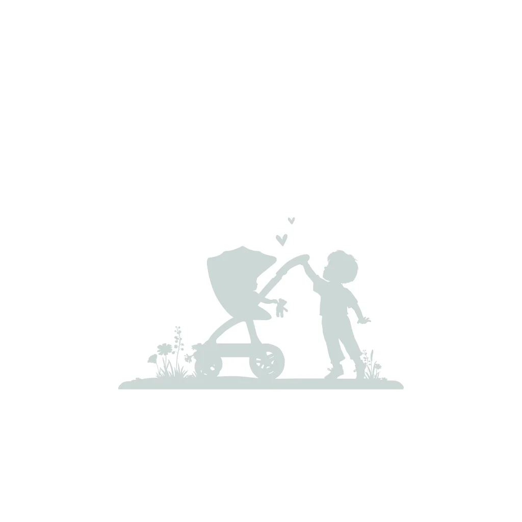 Samen op pad! Dat is wat je graag wenst. Grote broer die zijn kleine broertje meeneemt. Wist je dat je de silhouet eventueel zelf heel gemakkelijk kan aanpassen? Kijk in de editor bij silhouetten en kies het poppetje wat het best jullie zoontje weergeeft.
