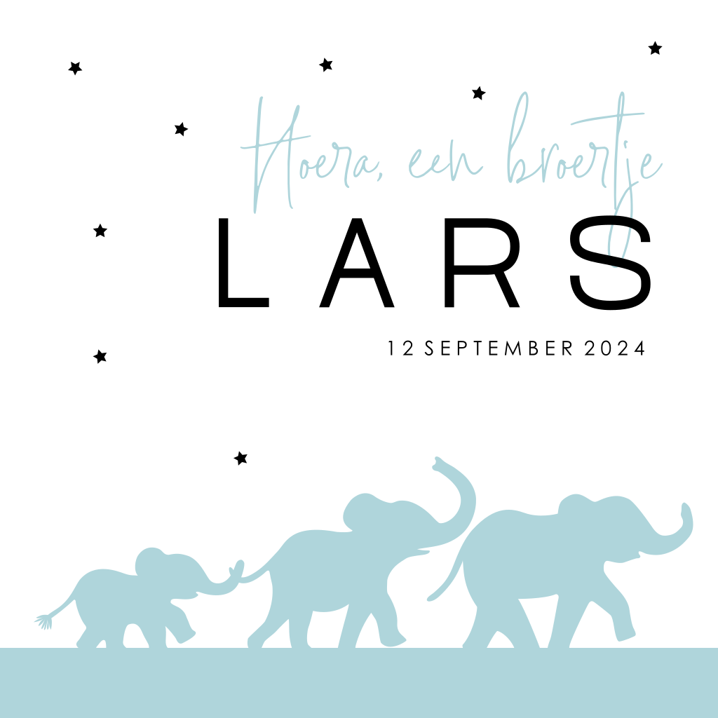 Lief kaartje geboorte broertje met olifantjes in blauw
