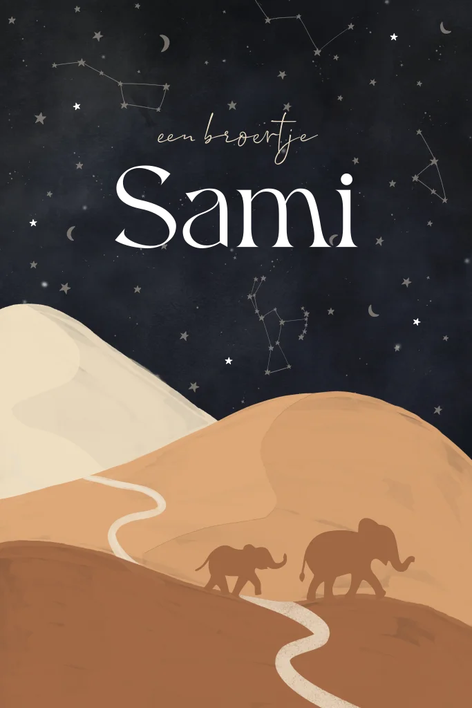 Stoer geboortekaartje voor broertje met olifantjes en landschap