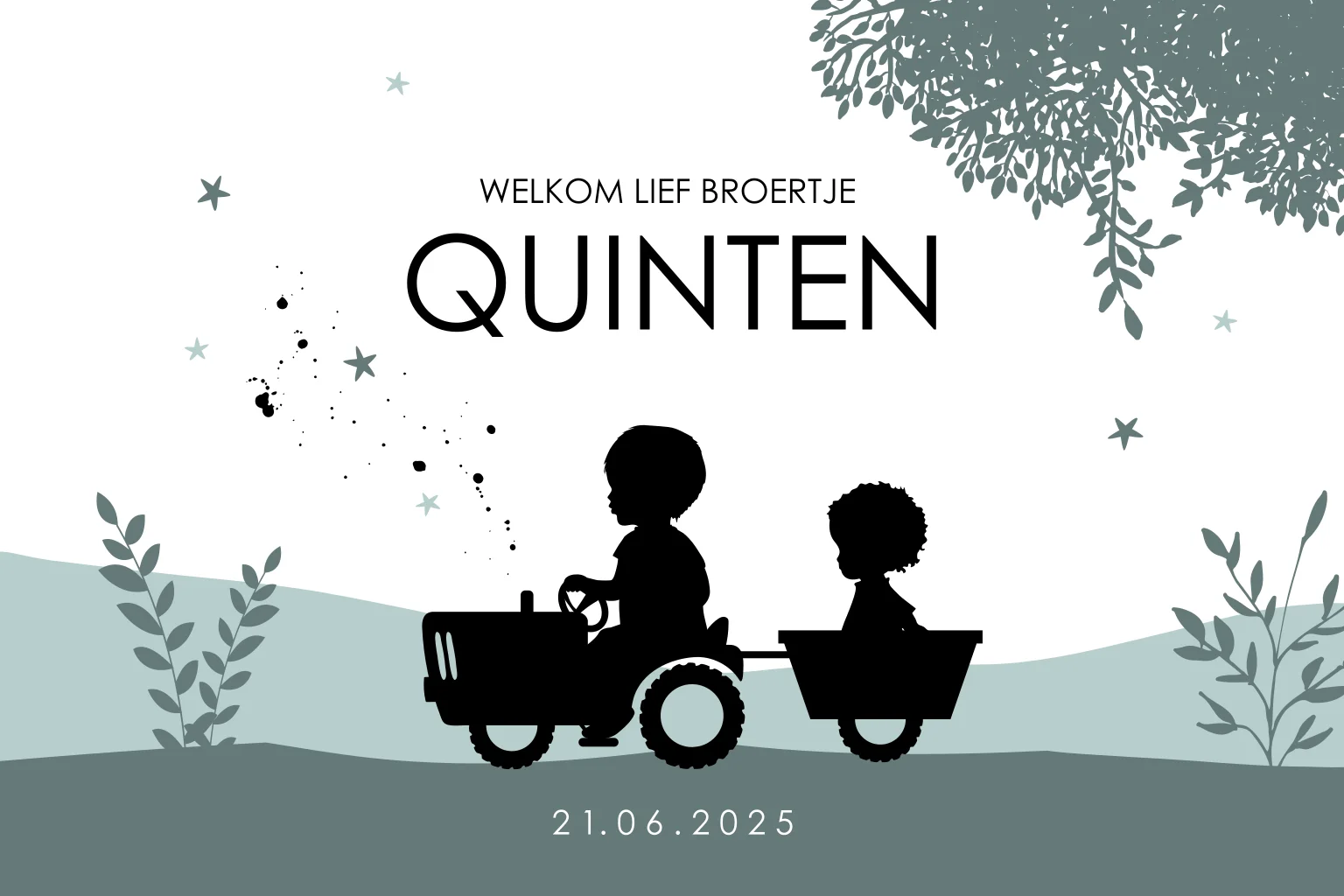 Trots op een broertje erbij! Dat kun je heel mooi laten zien met dit geboortekaartje. Alle silhouetjes zijn los zodat je precies jullie gezin kunt samenstellen.