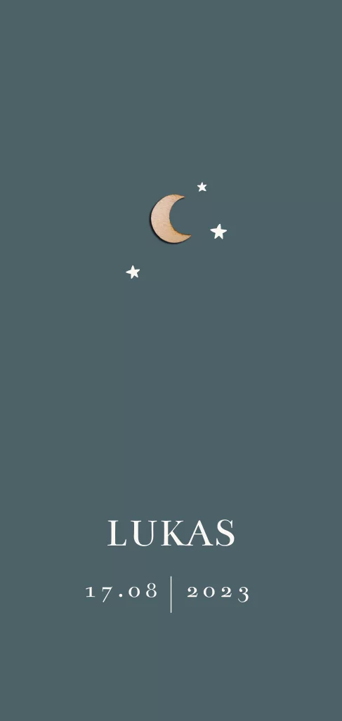 Goed om te weten: de houten maantjes worden niet standaard meegeleverd, deze kun je zelf toevoegen tijdens het bestelproces. Je vindt alle houten elementjes hier. Wanneer je de kaartjes ontvangt, kun je het maantje er zelf opplakken.