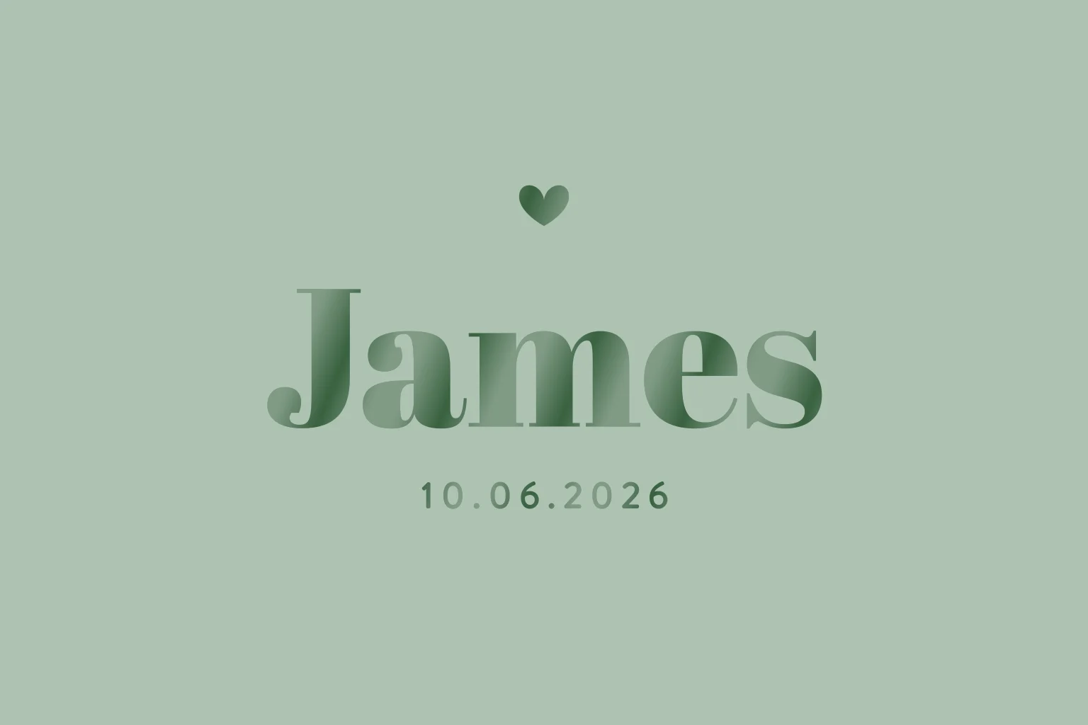 Bij de geboorte van jullie zoon, hoort een speciaal geboortekaartje. Wat dacht je van dit kaartje met de naam in groene glimmende afwerking?