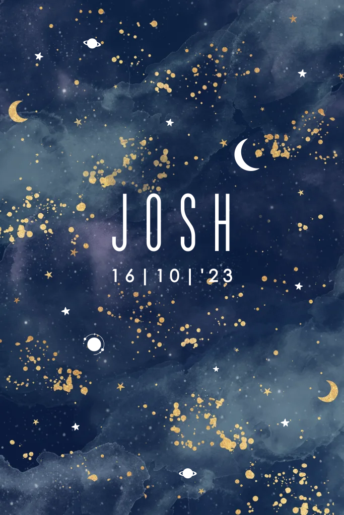 Een stijlvol geboortekaartje voor jongen. Door de achtergrond en de sterren krijg je meteen dat echte heelal gevoel. Wat dit kaartje zo bijzonder maakt? De naam, sterren en planteren worden gedrukt in goudfolie.