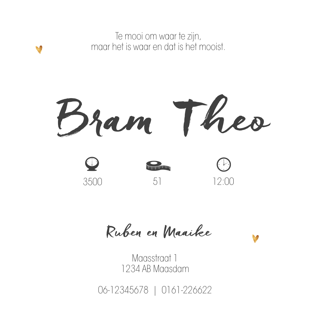 Stijlvol geboortekaartje wit met gouden paardenbloem