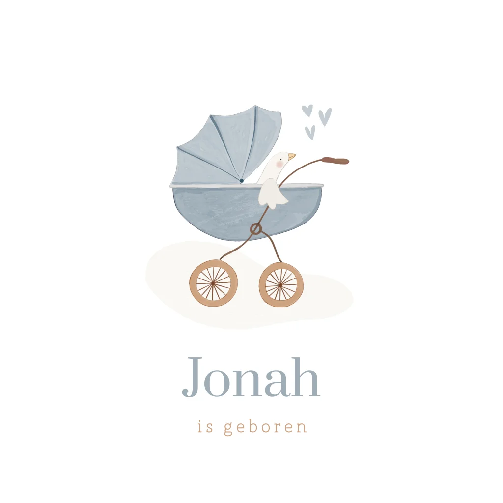 Geboortekaartje jongen met blauwe klassieke kinderwagen